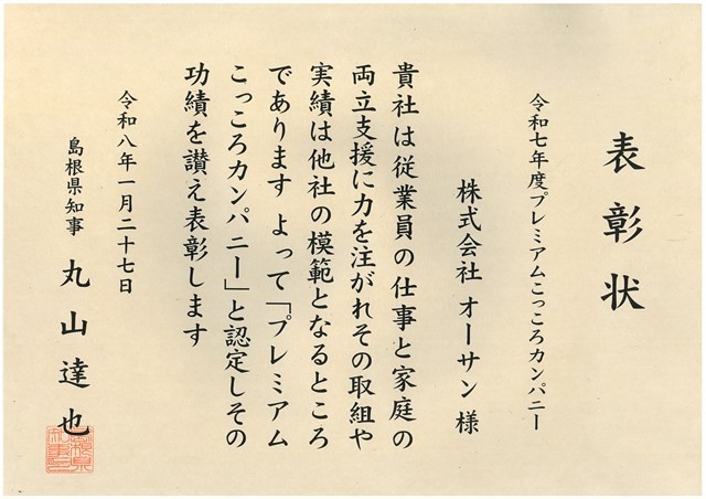 2026年1月27日、株式会社オーサンは、島根県知事より
